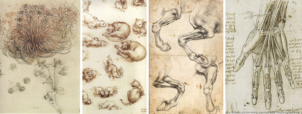 Podemos ver esto en sus exquisitos estudios de plantas, animales, anatomía, astronomía, meteorología, balística.