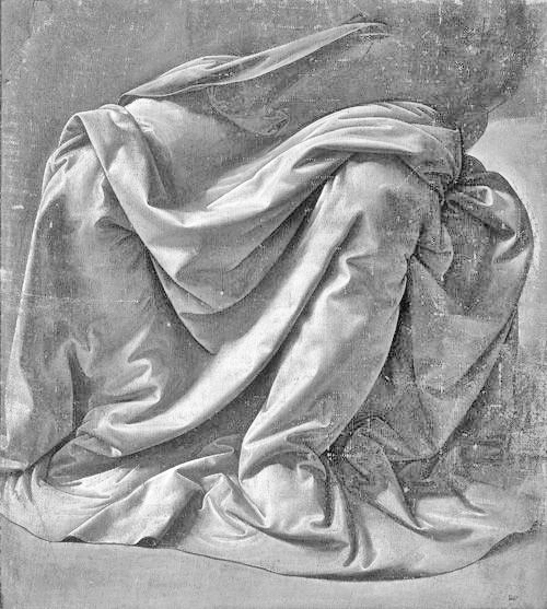 Esa gran curva de tela que cae desde la rodilla hasta el pie se ve tan serena, tan flexible. Aunque la luz es intensa, acentuando la firmeza de las piernas y la tela, hay una tremenda sutileza en los matices de luz y oscuridad. Vemos el amor de Leonardo en el efecto suavizante de las sombras a medida que los pliegues desaparecen en los recovecos oscuros y misteriosos. Esta hermosa obra provee una guía de cómo necesitamos ver a otros seres humanos.